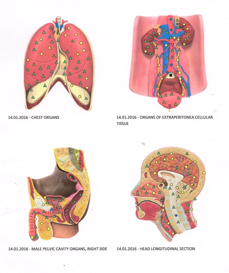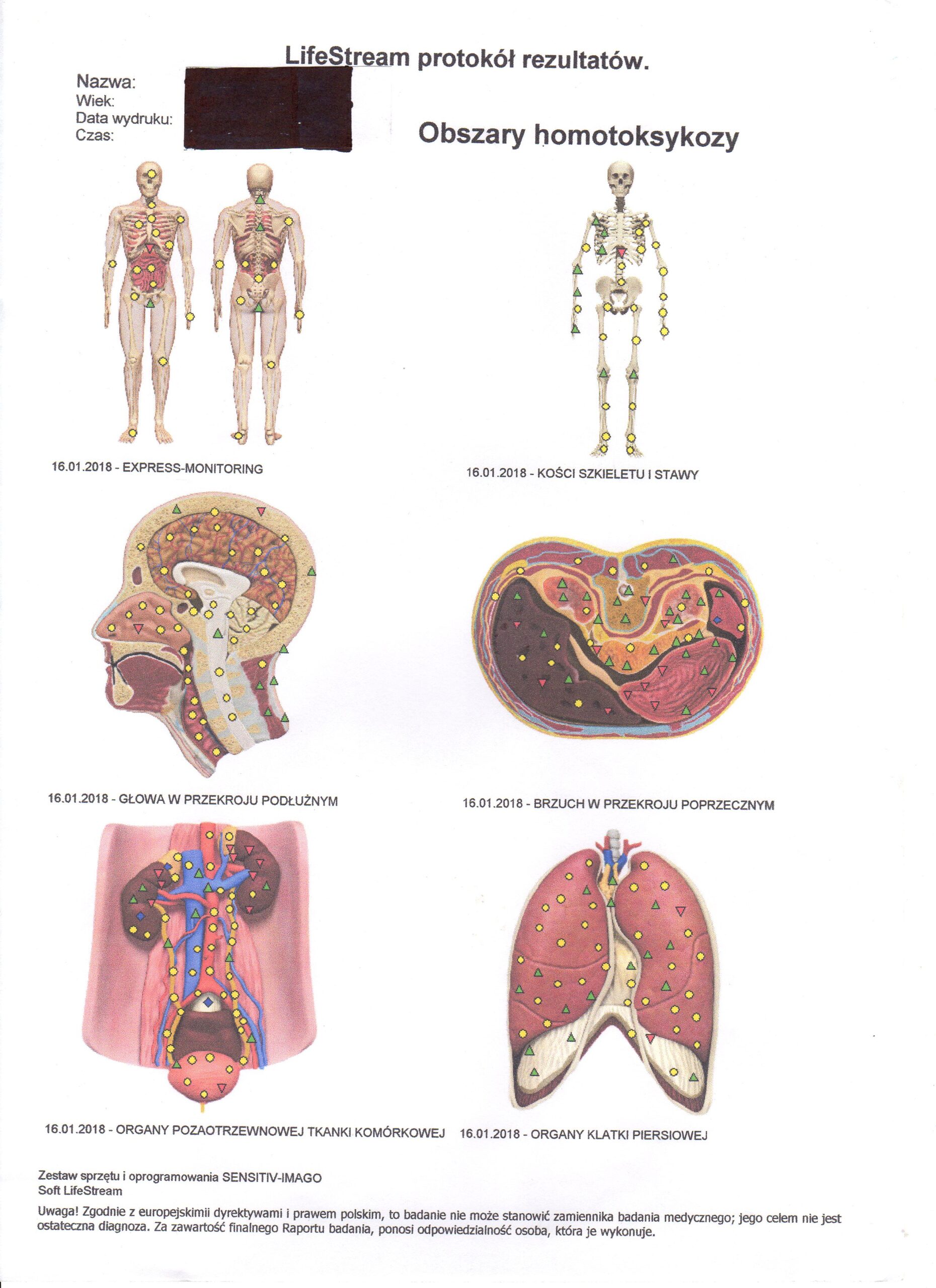 Wykazuje również zanieczyszczenia organizmu metalami ciężkimi, związkami toksycznymi i pestycydami. Czynniki antropogeniczne np. promieniowanie elektromagnetyczne radiotelefonu, smog elektryczny, obciążenie geopatyczne itp.